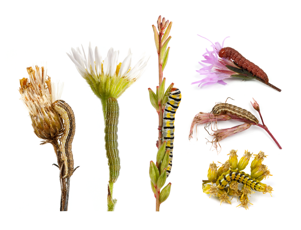 Each design shows native caterpillars alongside the inflorescences and other plant structures they depend on. The result is a set of bright, crisp, botanical portraits that highlight just how intertwined the natural world really is.